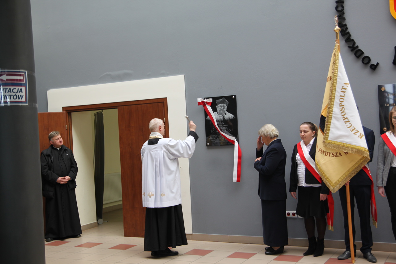 Poświęcenia pamiątkowej tablicy dokonał Kanclerz Kurii Biskupiej w Rzeszowie ks. prof. dr hab. Piotr Steczkowski.