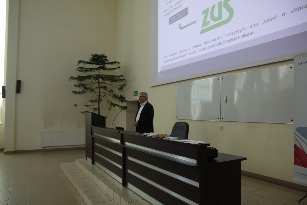 Pierwszym zagadnieniem wykładu było przedstawianie systemu pracy ZUS-u, który