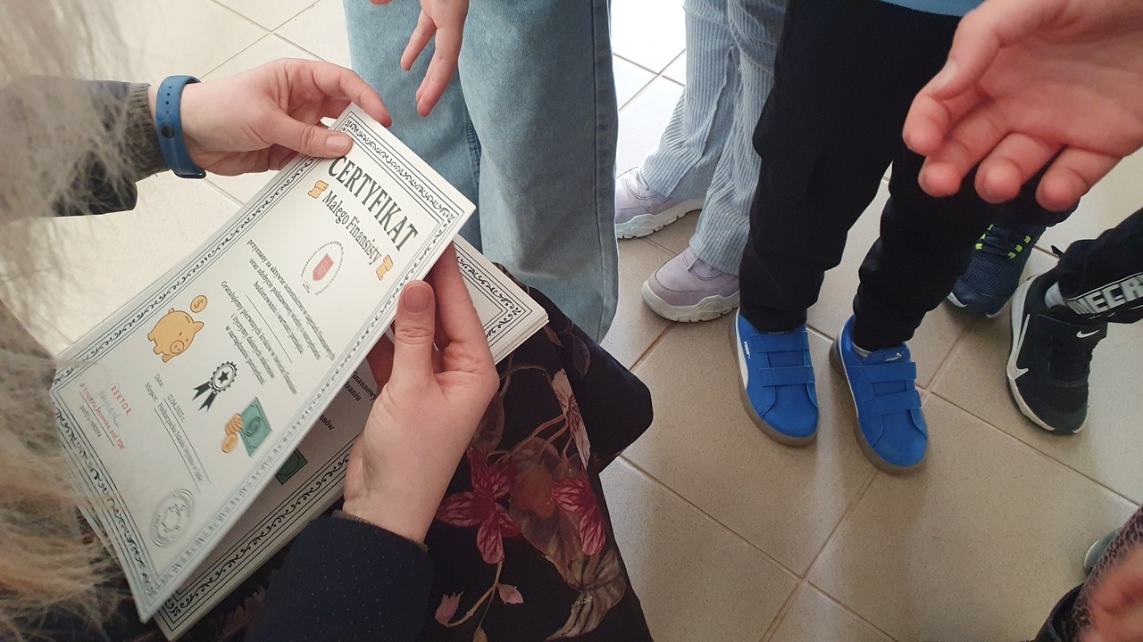 Na zakończenie dnia odbył się wykład prowadzony przez mgr Iwonę Cypcar-Klimek, poświęcony tematyce finansów i rachunkowości. Dzieci dowiedziały się m.in., skąd biorą się pieniądze, jak z nich mądrze korzystać oraz dlaczego warto oszczędzać. Za aktywne uczestnictwo w zajęciach każdy z młodych słuchaczy otrzymał Certyfikat Małego Finansisty, który z pewnością będzie miłą pamiątką z tego wyjątkowego dnia.