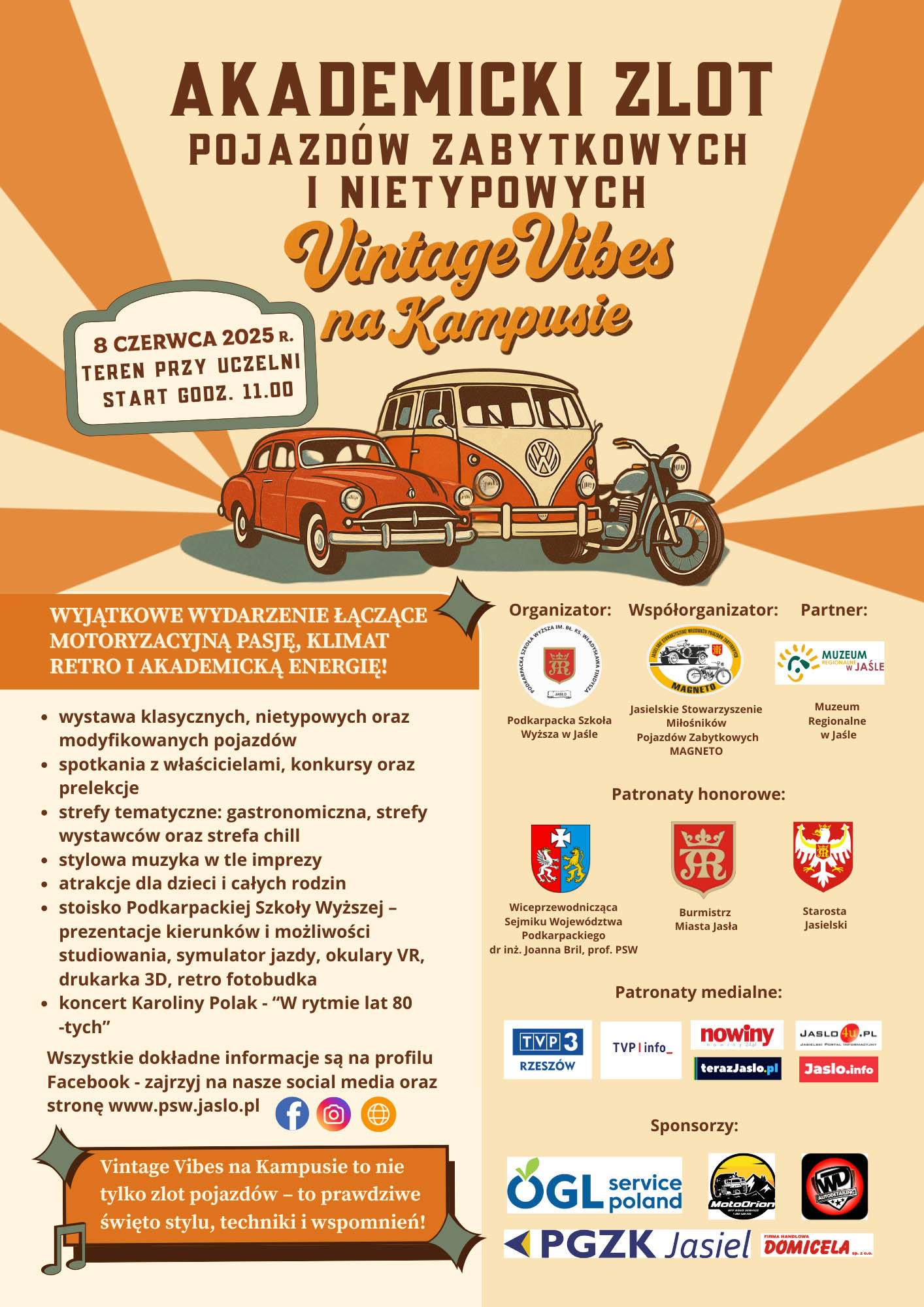 Akademicki Zlot Pojazdów Zabytkowych i Nietypowych – Vintage Vibes na Kampusie to wyjątkowe wydarzenie motoryzacyjne organizowane przez Podkarpacką Szkołę Wyższą w Jaśle oraz Stowarzyszenie Miłośników Pojazdów Zabytkowych Magneto z Jasła. Łączy ono fascynację klasyczną motoryzacją z niepowtarzalną atmosferą akademicką i stylem retro. Wydarzenie odbędzie się na terenie kampusu Podkarpackiej Szkoły Wyższej w Jaśle.