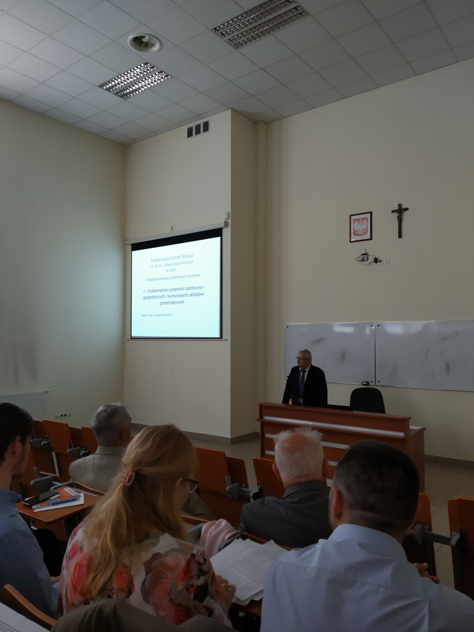 W dniu 22 czerwca 2019 r. w Podkarpackiej Szkole Wyższej im. bł. ks. Władysława Findysza w Jaśle odbyła się MIĘDZYNARODOWA KONFERENCJA NAUKOWA nt. „ PROBLEMY PRZEMIAN SPOŁECZNO-GOSPODARCZYCH I KULTUROWYCH UKŁADÓW PRZESTRZENNYCH” pod patronatem naukowym Przewodniczącego Komitetu Przestrzennego Kraju przy Prezydium Polskiej Akademii Nauk,