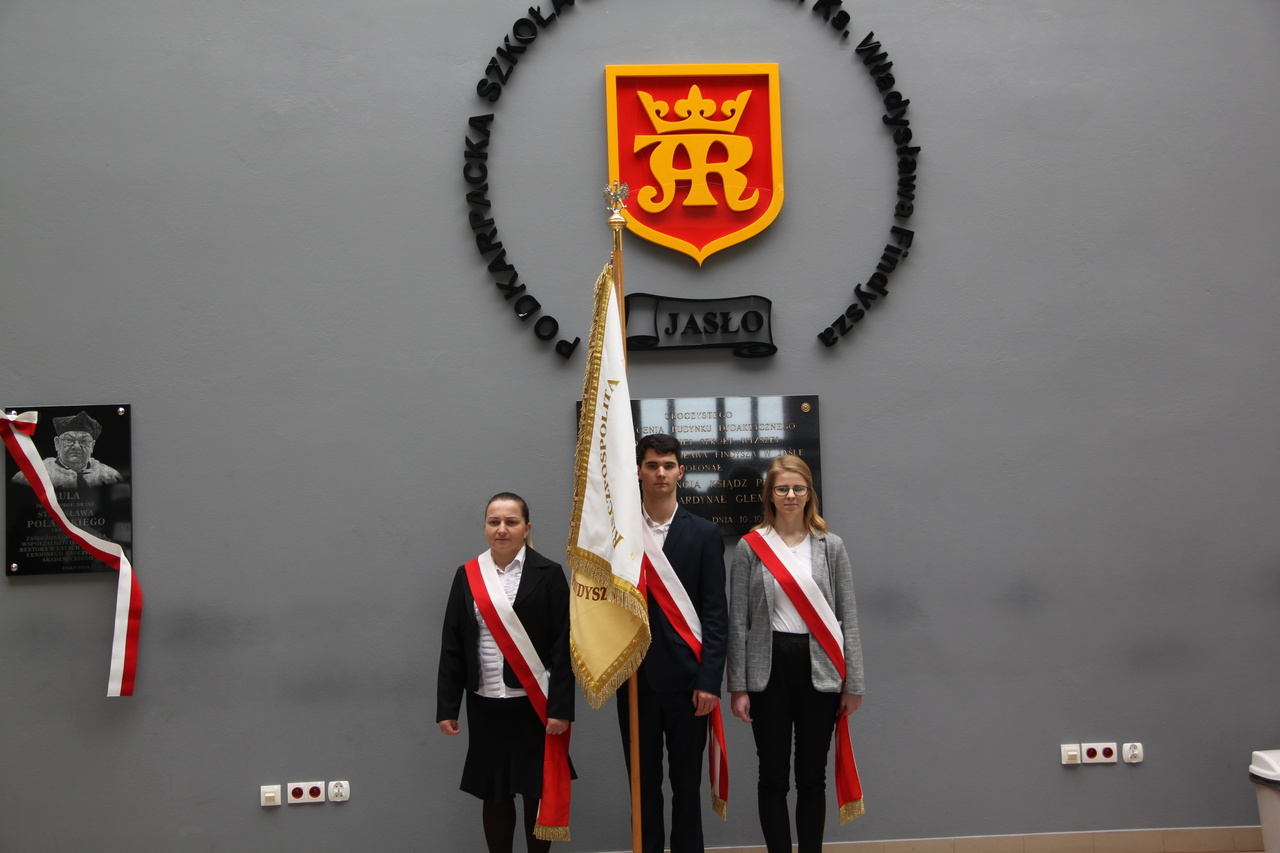 Kolejnym punktem uroczystości było poświęcenie i odsłonięcie tablicy pamiątkowej poświęconej wieloletniemu Rektorowi i współzałożycielowi Podkarpackie Szkoły Wyższej w Jaśle prof. dr inż. Stanisławowi Polańskiemu.