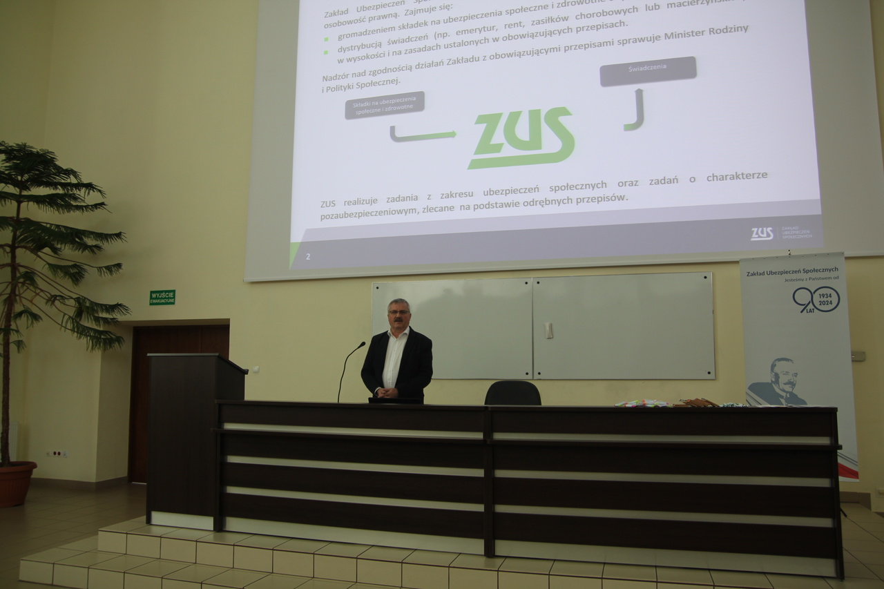 Pierwszym zagadnieniem wykładu było przedstawianie systemu pracy ZUS-u, który