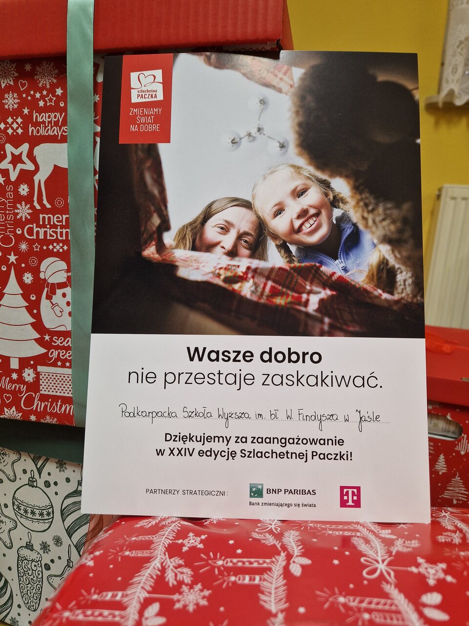 Aby tradycji stała się zadość, nasi studenci po raz kolejny włączyli się w akcję Szlachetna Paczka - edycja 2024. Przedstawiciele samorządu studenckiego zebrali potrzebne pieniądze od całej społeczności akademickiej oraz przygotowali paczki dla potrzebującej rodziny z powiatu jasielskiego. Kilka słów na temat rodziny oraz całej akcji opowiedział nam Dominik Rak - przewodniczący samorządu studenckiego