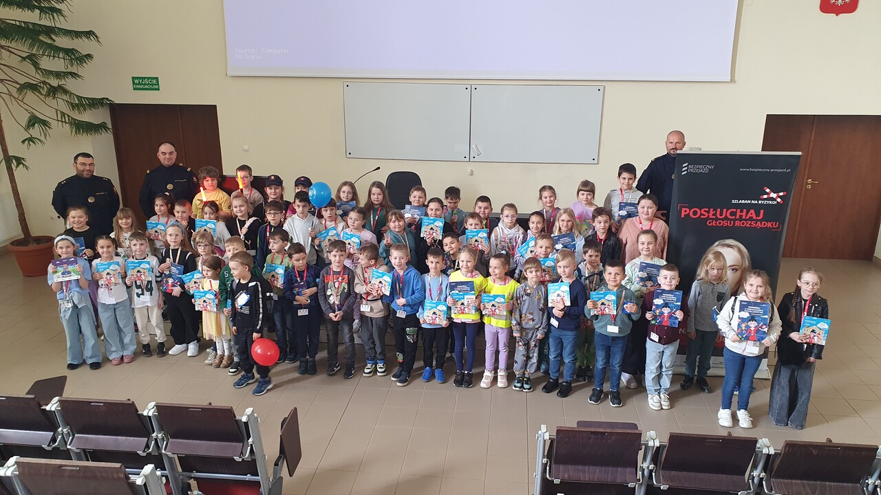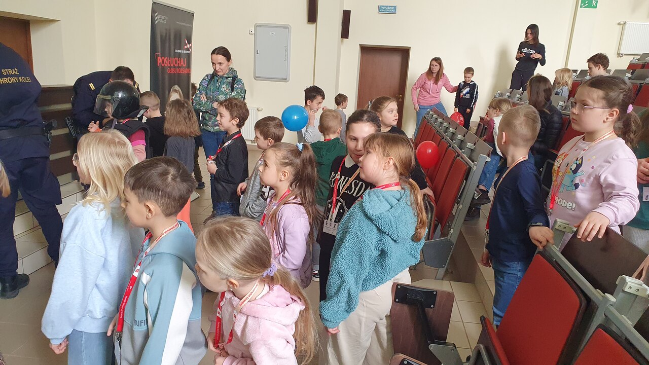 Program rozpoczął się od niezwykle interesującego wykładu poprowadzonego przez funkcjonariuszy Straży Ochrony Kolei z Jasła. Dzieci z ogromnym zainteresowaniem słuchały opowieści o codziennej pracy funkcjonariuszy oraz o zasadach bezpieczeństwa na terenach kolejowych. Nie zabrakło również licznych pytań ze strony młodych uczestników, na które prowadzący chętnie odpowiadali, dzieląc się swoją wiedzą i doświadczeniem.