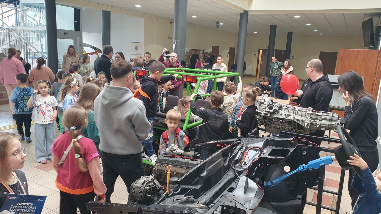 Kolejnym punktem programu było zwiedzanie ekspozycji prac dyplomowych studentów naszej uczelni. Mali studenci z zaciekawieniem przyglądali się efektom pracy starszych kolegów, szukając inspiracji i pomysłów na własne projekty w przyszłości. Było to spotkanie pełne entuzjazmu, kreatywności i otwartości na nowe doświadczenia.