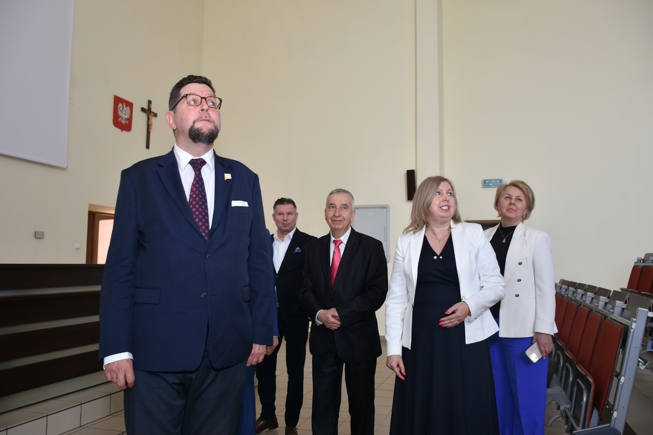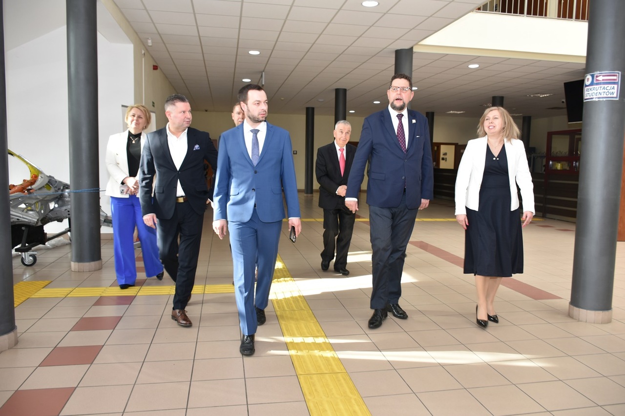 Podczas wizyty goście zostali oprowadzeni po aulach wykładowych i salach dydaktycznych. Mieli okazję zapoznać się z aktualną ofertą edukacyjną uczelni, dostosowaną do potrzeb regionalnego rynku pracy, a także zrealizowanymi inwestycjami, które znacząco poprawiły stan techniczny infrastruktury naukowo-dydaktycznej. Wśród nich znalazły się m.in.: zakup specjalistycznego wyposażenia, rozwój sieci teleinformatycznej oraz działania zwiększające dostępność obiektów dla osób ze szczególnymi potrzebami.